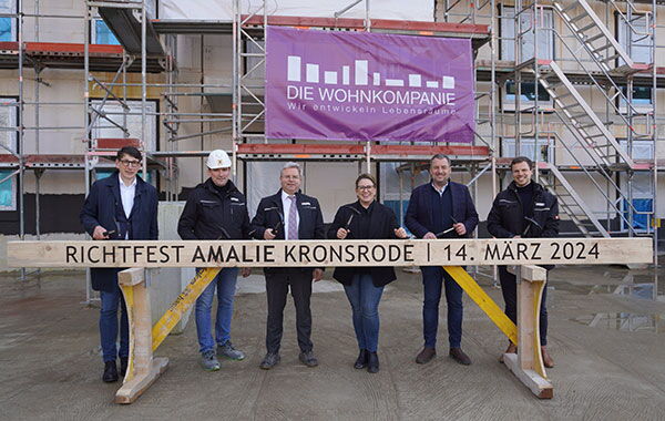 130 Projektbeteiligte und Gäste feierten mit DIE WOHNKOMPANIE Nord und Wilhelm Wallbrecht Richtfest auf dem Baufeld AMALIE ...