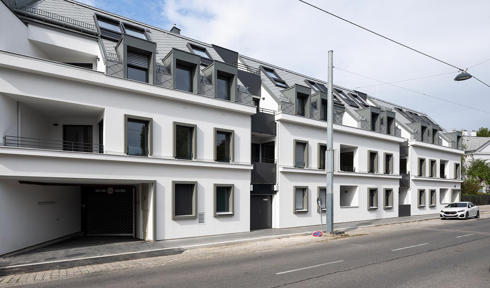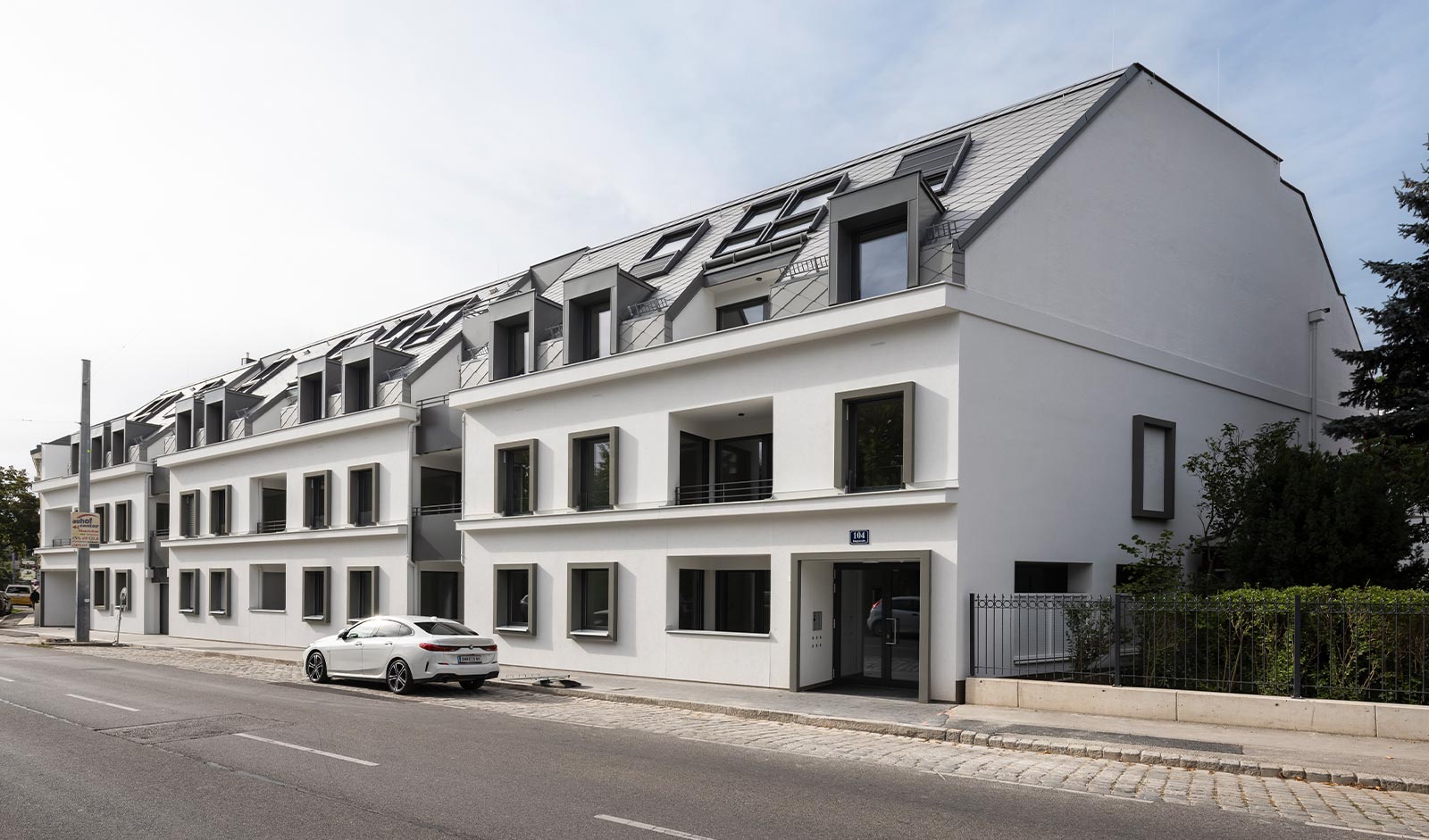 DIE WOHNKOMPANIE hat in der Hauptstraße 104 in 1140 Wien 56 freifinanzierte Eigentumswohnungen mit 2–4-Zimmern von 46 bis 125 m² errichtet. Das moderne Projekt am Rande des Wienerwalds besteht aus 2 Baukörpern mit je einem Stiegenhaus und einer Tiefgarage mit 42 PKW-Abstellplätzen. Bei einigen Stellplätzen sind E-Anschlüsse möglich.