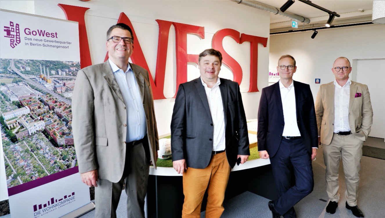 Berlin, 30. August 2021. Bei seinem Rundgang durch Charlottenburg-Wilmersdorf war Berlins Regierender Bürgermeister Michael Müller in der vergangenen Woche auch bei der WOHNKOMPANIE Berlin zu Gast. Sein Interesse galt den künftigen Gewerbehöfen GoWest, der größten Quartiersentwicklung in der Hauptstadt.