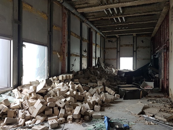 Abbrucharbeiten innerhalb der Türme nach der Asbestsanierung