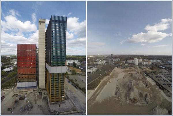 Vorher-Nachher: Das gesamte Areal vor und nach dem Rückbau der Türme der Deutschen Welle / Fotos: Jan Glisman