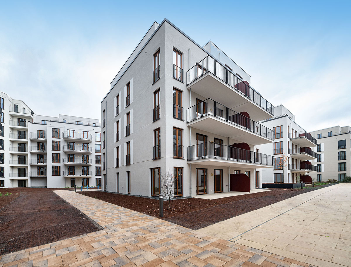 Wohnungen in fast jeder Größe und zu unterschiedlichen Mieten: 259 Wohnungen umrahmen sieben Stadtvillen mit 68 Wohnungen im Innenbereich. Foto: NHW / Marc Strohfeldt