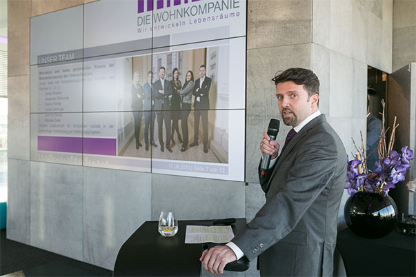 Bei strahlendem Sonnenschein in einem stilvollen Ambiente, präsentierte Geschäftsführer Roland Pichler das Unternehmen vor Vertretern der Immobilienbranche. Inhalt der Präsentation waren, unter anderem, die bereits von der Wohnkompanie in Wien geplanten Objekte. Dabei liegt die zielgruppenorientierte Entwicklung von Wohnprojekten mit der Erzielung höchster Energieeffizienz im Vordergrund.