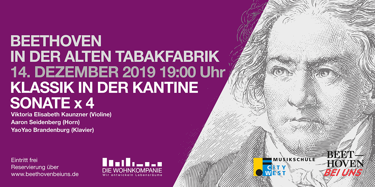 Gemeinsam mit der Musikschule City West, einer der größten Musikschulen Europas, beteiligt sich der Berliner Projektentwickler zum Auftakt des Beethoven-Jubiläumsjahres 2020 an der bundesweiten Kunstaktion „Beethoven bei uns“. Treffpunkt ist die einstige Werkskantine – ein Ort, an dem früher schon viele Konzerte stattfanden. An diese Tradition knüpfen Gastgeber und Musiker am Samstag, 14. Dezember, mit dem Beethoven-Hauskonzert an.