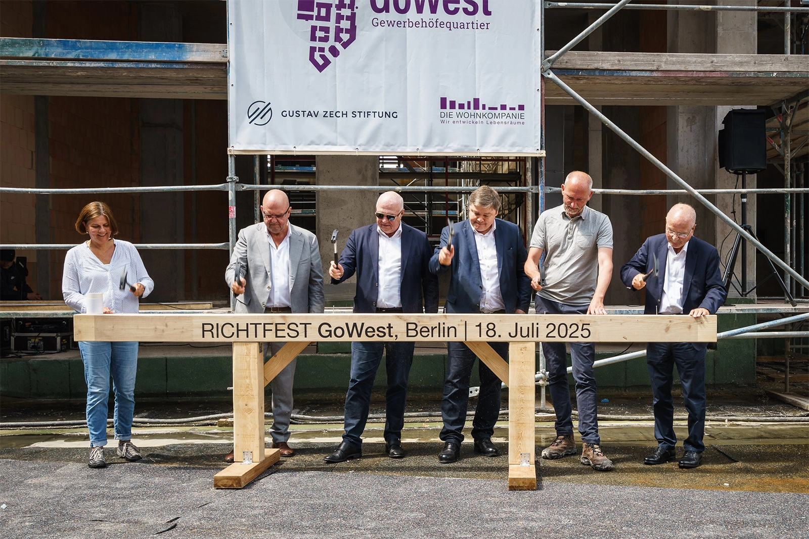 Bis 2028 entwickeln DIE WOHNKOMPANIE Berlin und die Gustav Zech Stiftung auf dem 74.000 m² großen Gelände in Berlin Schmargendorf insgesamt 190.000 m² BGF. Die Geschäftsführer Stephan Allner und Kurt Zech sowie der Stiftungsvorsitzende Wolfrat Voigt feierten den planmäßigen Abschluss des Rohbaus gemeinsam mit rund 250 Bauarbeitern, Planern, Nachbarn und Gästen. Nach dem Fest mit Grillbüfett und Countryband gab es für die Besucher den Original-GoWest-Richtschluck aus der quartierseigenen Schnapsbrennerei zum Mitnehmen.