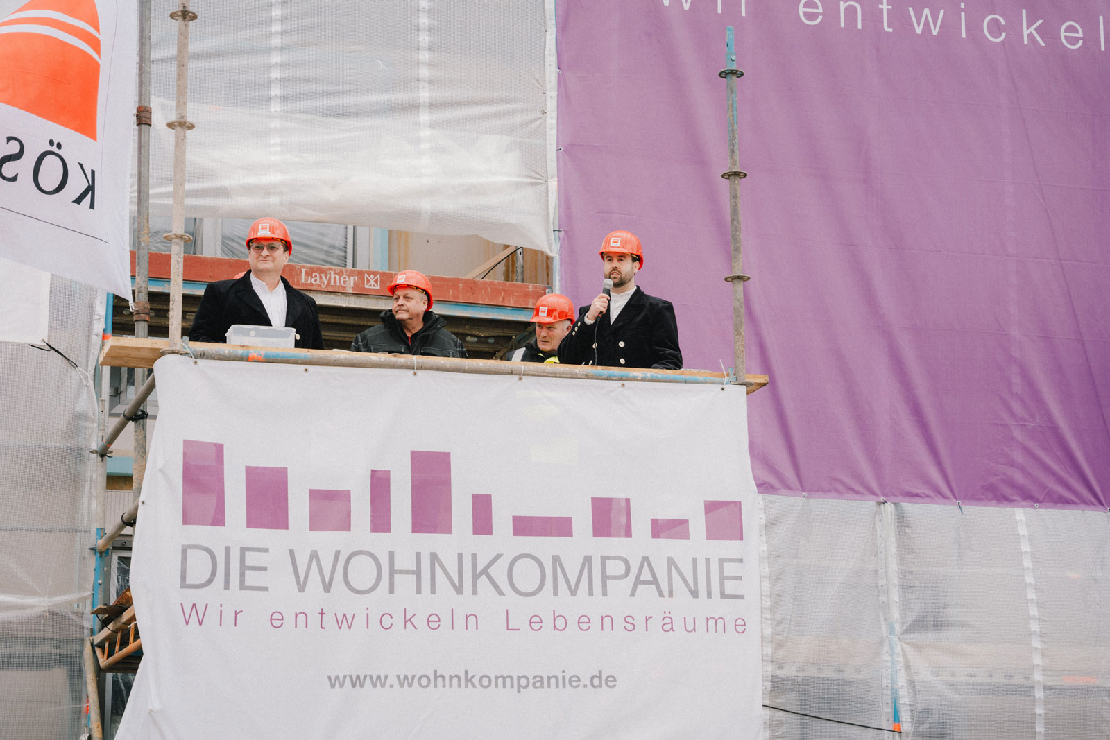 Nach der Begrüßung durch Nicole Müller, Geschäftsführerin der DIE WOHNKOMPANIE Nord GmbH, und dem Richtspruch des verantwortlichen Poliers konnte das Fest beginnen. Mit 150 geladenen Gästen wurde der zügige Baufortschritt bei Speis und Trank gefeiert.