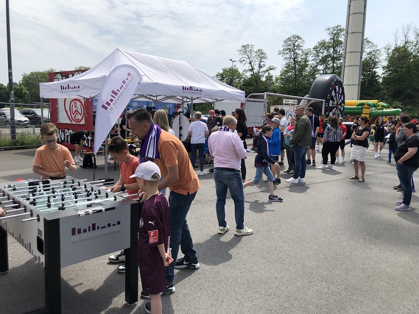 Zum Abschluss der Saison haben wir deshalb zum letzten Heimspiel ein Fanfest am Stadion an der Hafenstraße in Essen organisiert… nicht nur, um uns bei den Spielerinnen tatkräftig für eine fulminante und sehr erfolgreiche Saison zu bedanken, sondern auch, um uns als starker, regionaler und heimatverbundener Projektentwickler der Öffentlichkeit und den Fans präsentieren zu können.