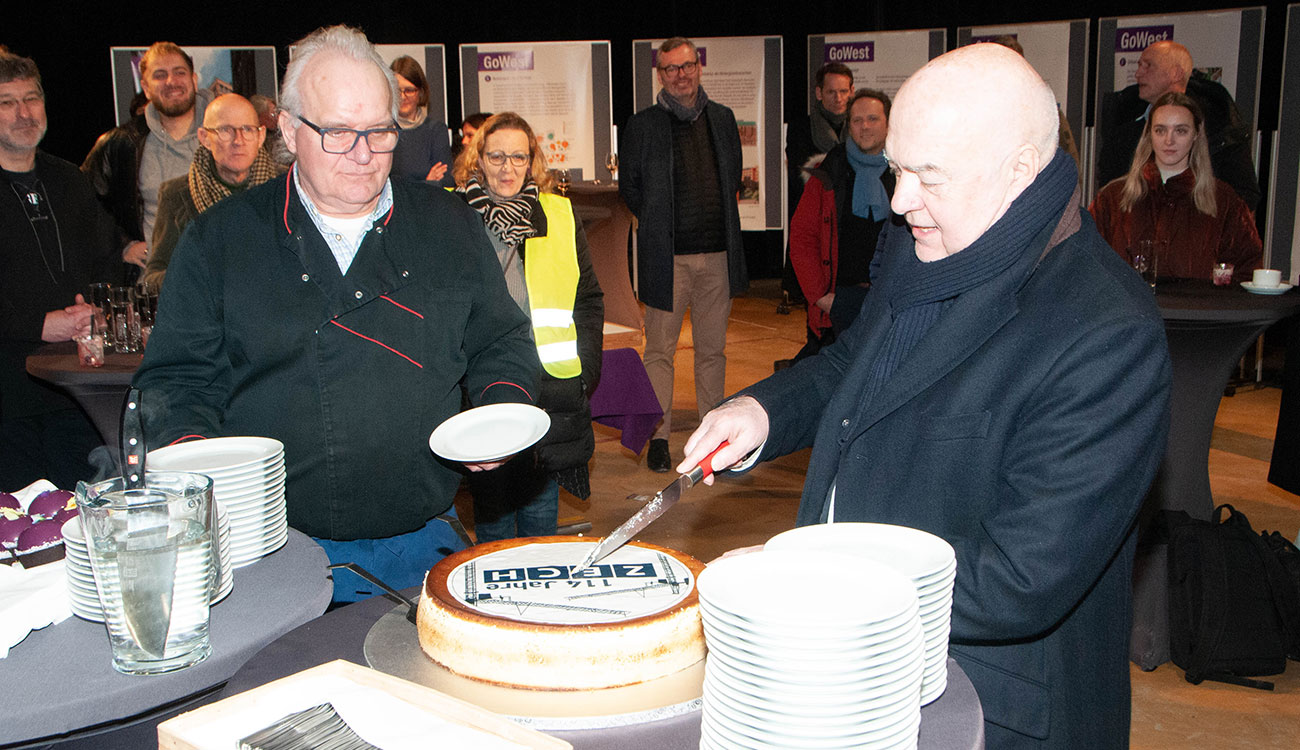 Nach dem Draußen-Spektakel freuten sich die Teilnehmer auf den Mittagsimbiss und die Geburtstagstorte im Fabriktheater. Denn auf den Tag genau vor 114 Jahren hatte Gustav Zech, der Großvater des heutigen Konzernchefs, sein Bauunternehmen gegründet. Grund zum Feiern gab es am 14. Februar also genug.