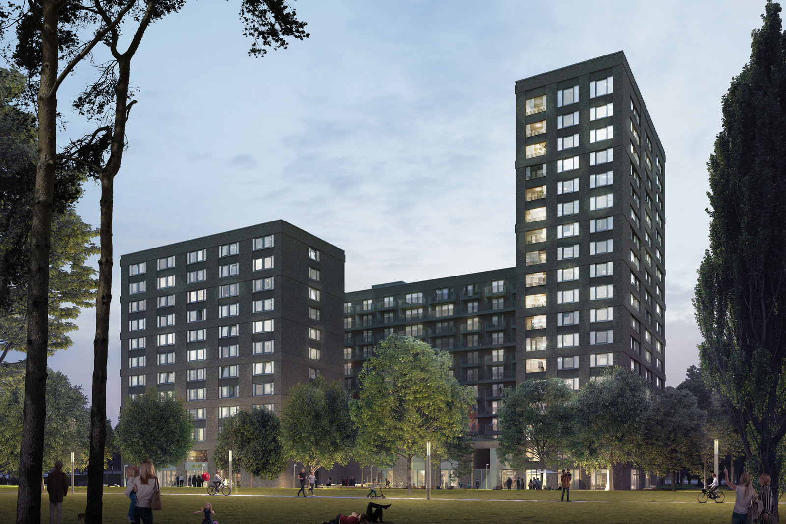 PERIGON – Hamburg-Winterhude: Das Perigon im Stadtteildreieck Winterhude, Barmbek und Alsterdorf ist der letzte Baustein des Hamburger Pergolenviertels. Das Gebäude hat im höchsten Gebäudeteil 18 Geschosse und eine maximale Höhe von 57 Metern. Auf dem 6.500 m² großen Grundstück sind 36.000 m² Bruttogeschossfläche für 345 Wohneinheiten entstanden, davon 166 geförderte Studierendenwohnungen und 20 Apartments für das Projekt „Hier wohnt Hamburgs Jugend“, das familienlose Jugendliche unterstützt. Dazu kommen eine Kita, Lebensmitteleinzelhandel sowie Praxis- und Gewerbeflächen.