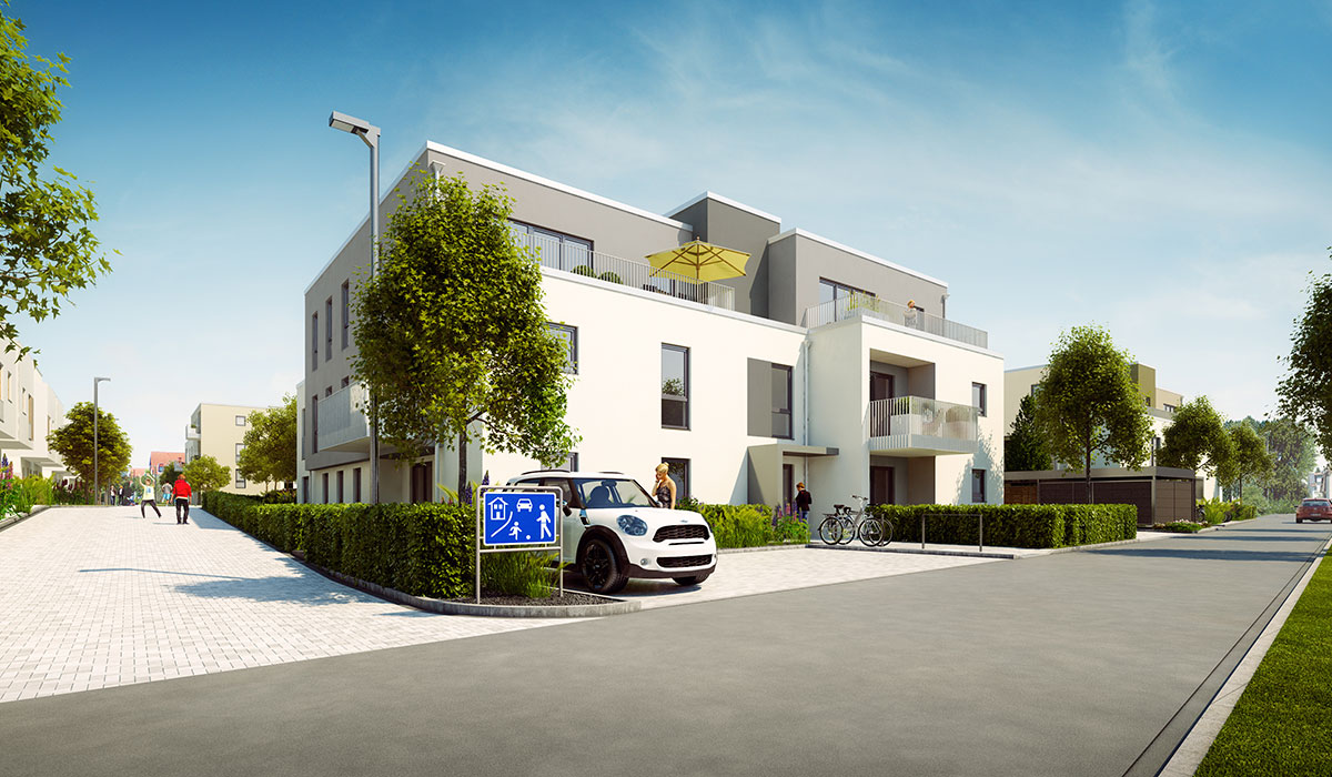 Die Wohnkompanie Rhein-Main realisiert in Karben eine neue Wohnanlage mit 61 hochwertigen und modernen Wohneinheiten mit Tiefgarage, Carports und oberirdischen Stellplätzen.