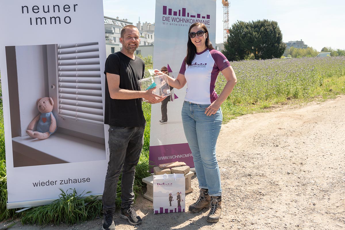 Wien Simmering. Im Rahmen einer Guerillamarketingaktion verschenkte DIE WOHNKOMPANIE über 500 Rosenstöcke. Der Wiener Bauträger stattet das von Gerlinde Heil als Vorsitzende neu übernommene Schloss Neugebäude mit über 200 Rosenstöcken aus. 100 Rosenstöcke gehen an Winzerin Birgit Wiederstein und 200 Stöcke an Private. Mit der Aktion wurden Spenden für die NeunerImmo gesammelt.