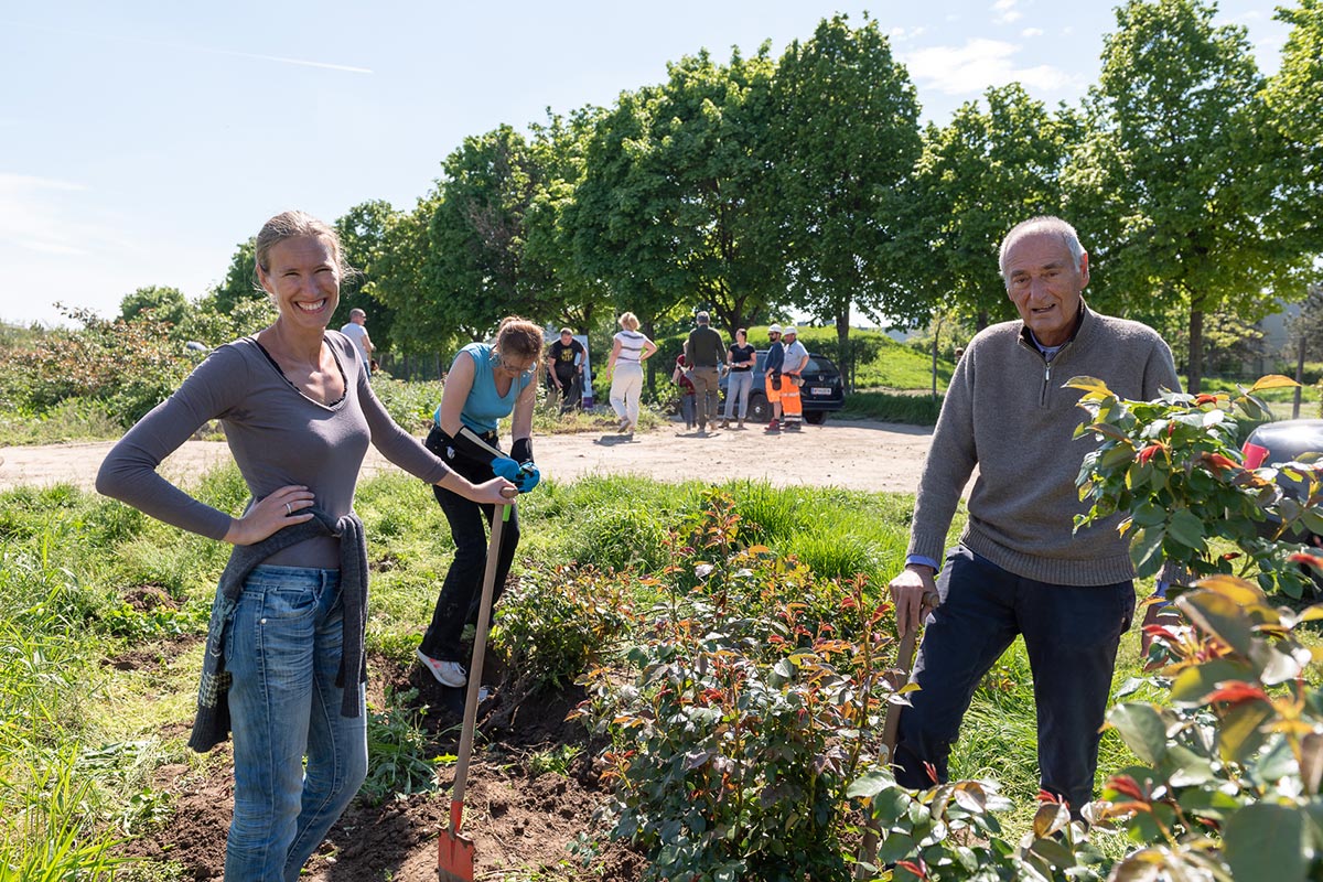 Über 100 Rosenstöcke gingen an die Göttlesbrunner Winzerin Birgit Wiederstein. „Zur Symbiose von Rosenstöcken und Rebstöcken gibt es zu sagen, dass die Mykorrhizastabilität deutlich erhöht ist, wenn Rosen zu Beginn der Rebzeilen gepflanzt werden. Unter Gehölzen wächst die Mykorrhiza weitaus stabiler und reicht bis zu 100 Meter in die Weingärten hinein. Auch Bäume rund um die Weingärten wirken stabilisierend, wobei die Rosen gut zu pflanzen sind und sich in der Bearbeitung der Weingärten gut integrieren lassen. Durch die höhere Vielfalt an Pflanzen – die auch mit der Einsaat von Kräutermischungen erzielt wird, ist eine Stabilisierung der Vielfalt durch mehrjährige und verholzende Pflanzen sehr vorteilhaft“, erklärt die umtriebige Winzerin.