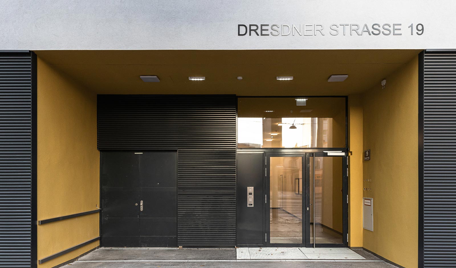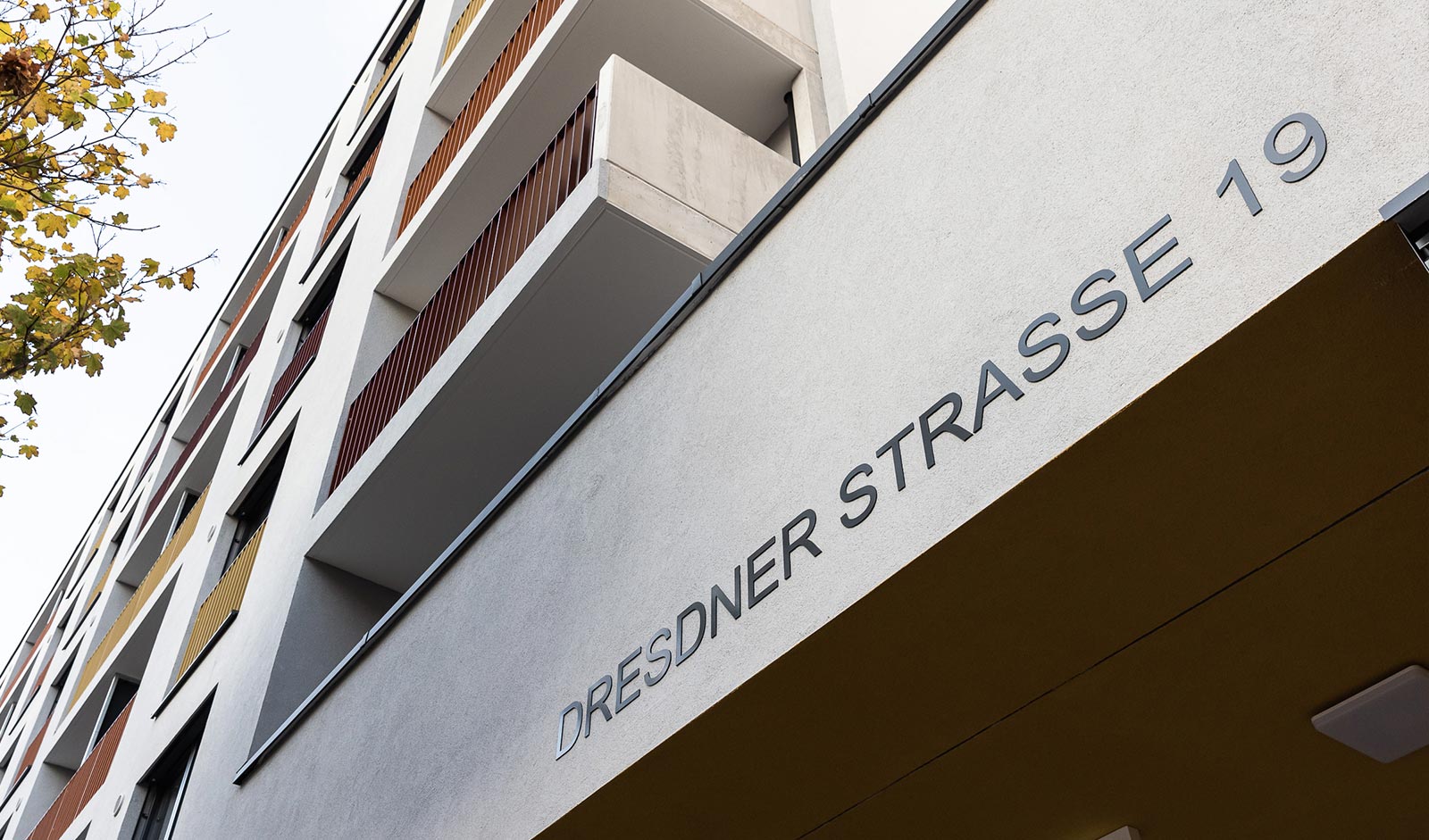 Am 9. November 2020 erfolgte der Baustart für das Wohnbauprojekt in der Dresdner Straße 17 + 19. Auf über 13.000m² wurde eine neue moderne Wohnanlage, ein Supermarkt und eine zweigeschossige Tiefgarage errichtet. Um zwei großzügig begrünte Innenhöfe gruppieren sich 217 effizient geschnittene 2- bis 4-Zimmer-Wohnungen in unterschiedlichsten Wohnungsgrößen.
