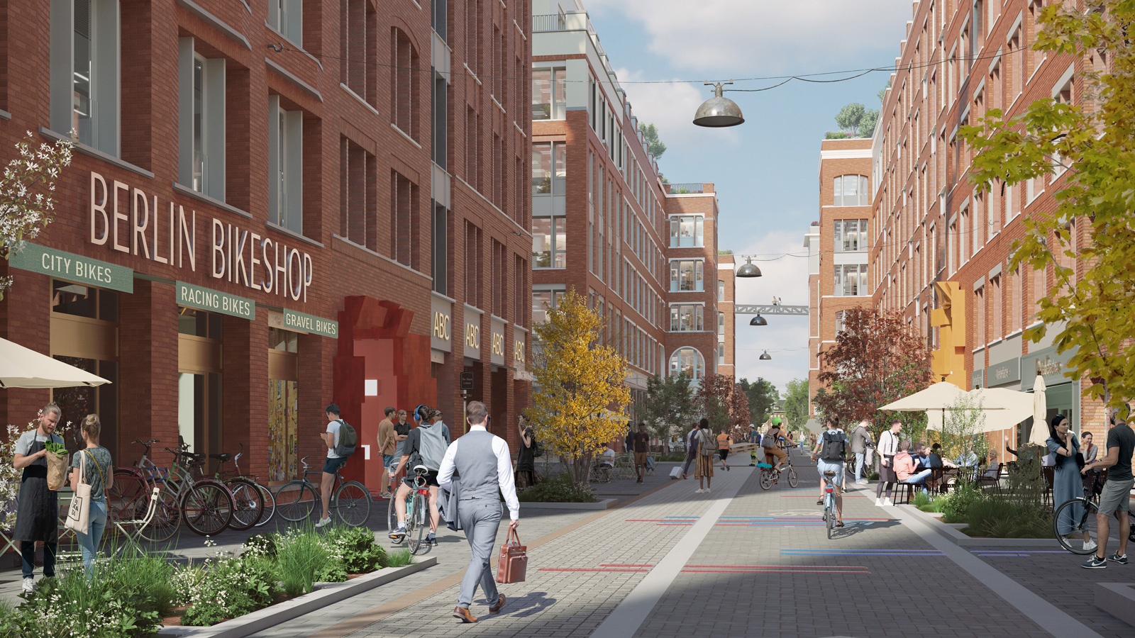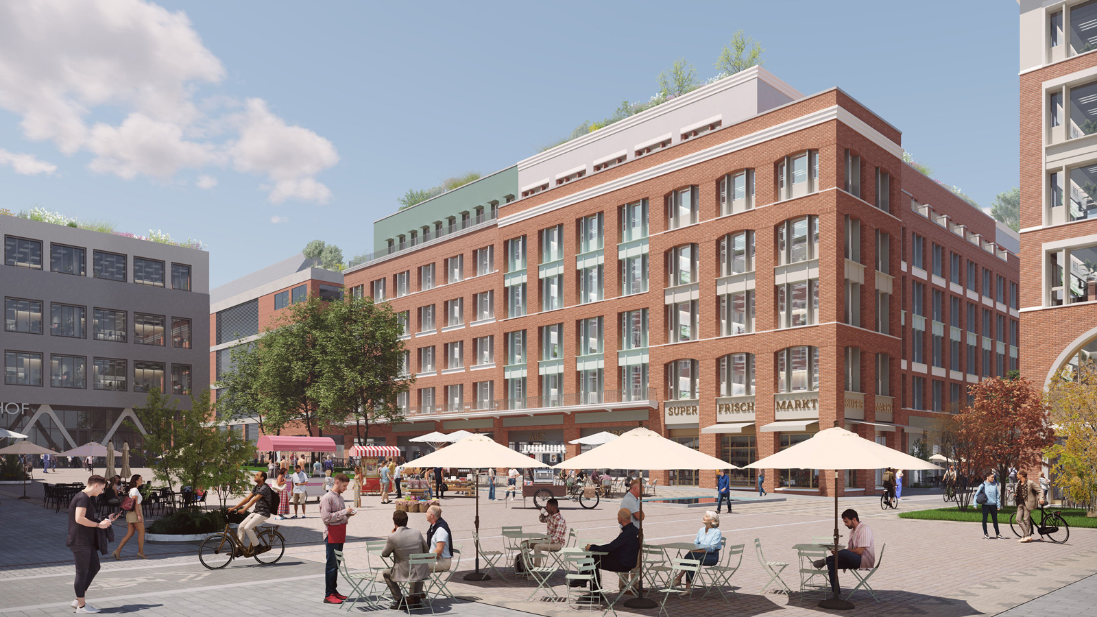 Herzstück des 7,4 Hektar großen Gewerbeareals wird der zentrale Quartiersplatz mit Geschäften und Gastronomie, einem Hotel, Kino und Theater. Nachdem das Gelände zwischenzeitlich schon von Filmemachern, Schauspielern und Street-Art-Künstlern genutzt wurde, sollen Kunst und Kultur hier auch nach der Neugestaltung einen festen Platz finden. Im städtebaulichen Konzept wird besonderer Wert auf die attraktive Gestaltung sowohl der neuen Gewerbeflächen wie auch der öffentlichen Plätze und Wege gelegt. Der Marktplatz und die Flaniermeile laden auch am Wochenende zum Besuch ein.