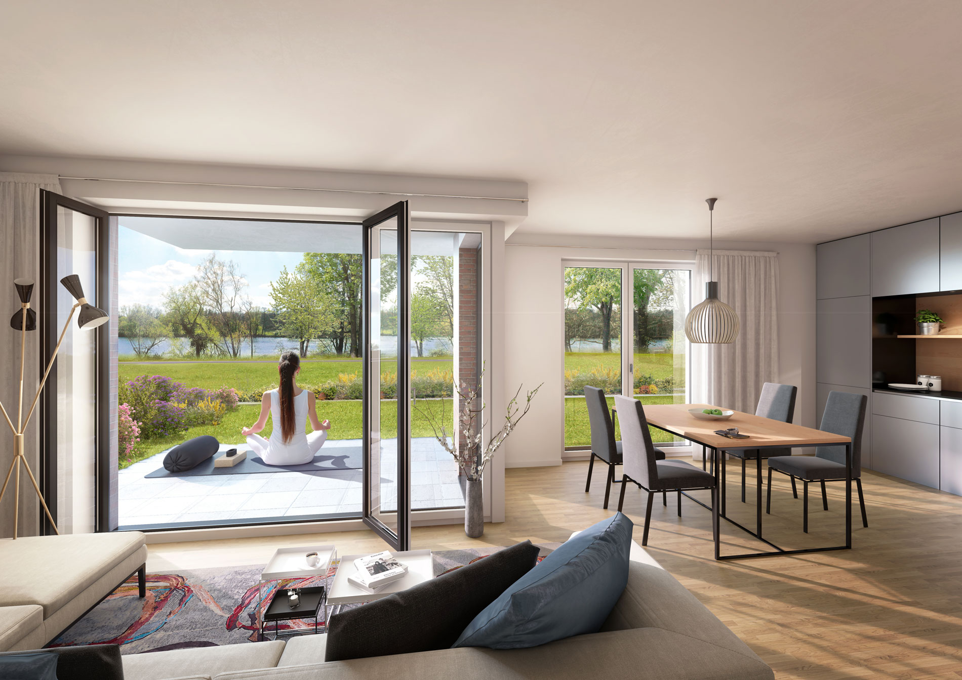 Die Eigentumswohnungen bieten mit 1,5 – 5 Zimmern viel Freiraum für individuelle Vorstellungen. Am Ufer führt der öffentliche Main-Radweg entlang. Die geschmackvolle und hochwertige Ausstattung schafft eine stilvolle Wohlfühlatmosphäre und erfreut die Bewohner auch noch nach vielen Jahren.