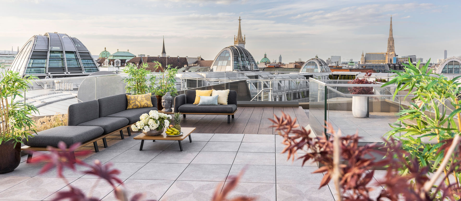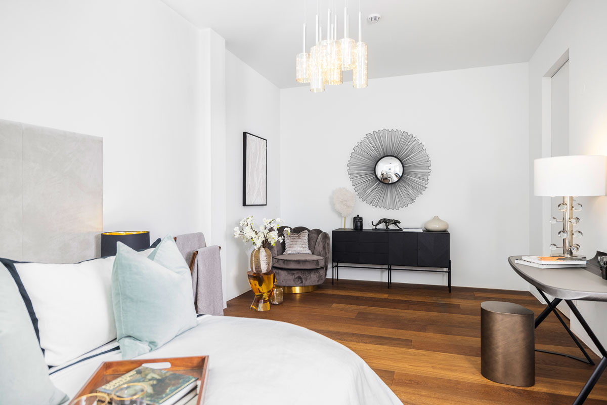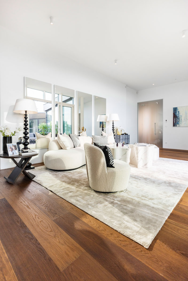 Im 1. Dachgeschoss entstanden zwei beeindruckende Penthouses mit bis zu 3,5 m Raumhöhe, 360°-Rundumblick sowie begrünter Dachlandschaft samt möglichem Outdoor-Spa und Außenküche. Edle Komponenten sind hier selbstverständlich. Die Ausstattung wurde sorgfältig ausgewählt und besticht durch ausgesuchte Qualität.