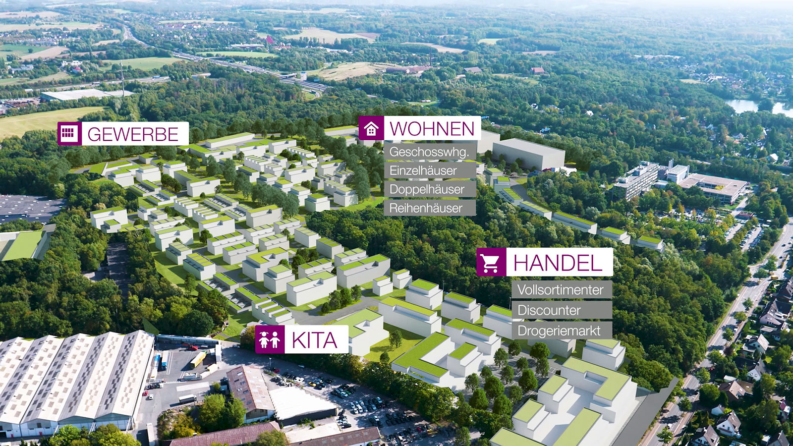 Wer wie wir mit offenen Augen in der Region unterwegs ist, kennt nicht nur den immensen Bedarf an Wohnungen – der entdeckt auch gleich die dazu passenden Lösungen. Hier an der Rehhecke in Ratingen-Lintorf liegt ein Areal, das wir für Wohn- und Gewerbeflächen entwickeln werden. Zirka 50 Hektar warten auf unsere Ideen – an der Schnittstelle zwischen Düsseldorf und Ruhrgebiet, perfekt angebunden. 20 Hektar Wald bleiben erhalten und zirka sechs Hektar Gewerbe bilden bereits heute den Bestand.