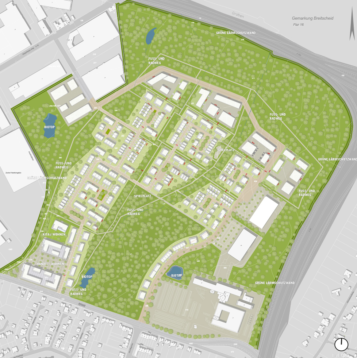 Über 85.000 Quadratmeter BGF (Brutto-Grundfläche) werden zusätzlich für die gewerbliche Nutzung bereitstehen. Die Mischung aus Wohnen, Gewerbe und Handel für den täglichen Bedarf schafft hier einen ganz neuen Stadtteil – und eine Kita planen wir natürlich auch gleich ein.