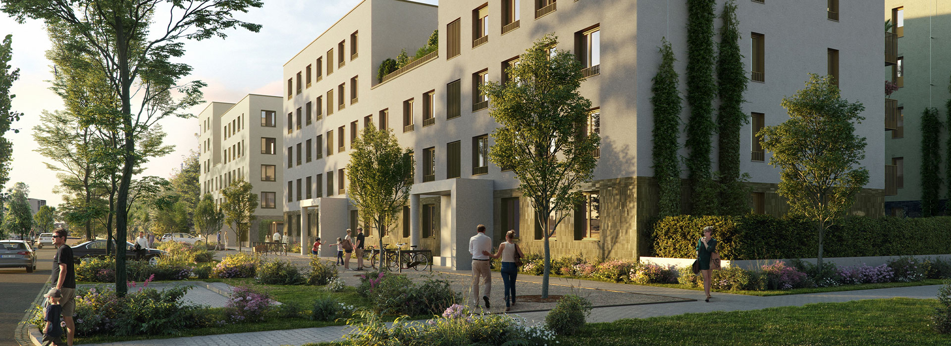 Es entstehen über 200 Wohnungen auf höchstem energetischem und ökologischem Standard. Das Ensemble wird nach DGNB-Gold-Standard und entsprechend den Anforderungen BEG 40 NH geplant. Das umfassende Nachhaltigkeitskonzept berücksichtigt unter anderem Baustoffe, Dach- und Fassadenbegrünung, Urban Gardening und eine Energieversorgung auf Basis erneuerbarer Energien. Ergänzt wird das Konzept durch Mobilitätskonzepte und Gemeinschaftsangebote für die Nutzer der Wohnungen.