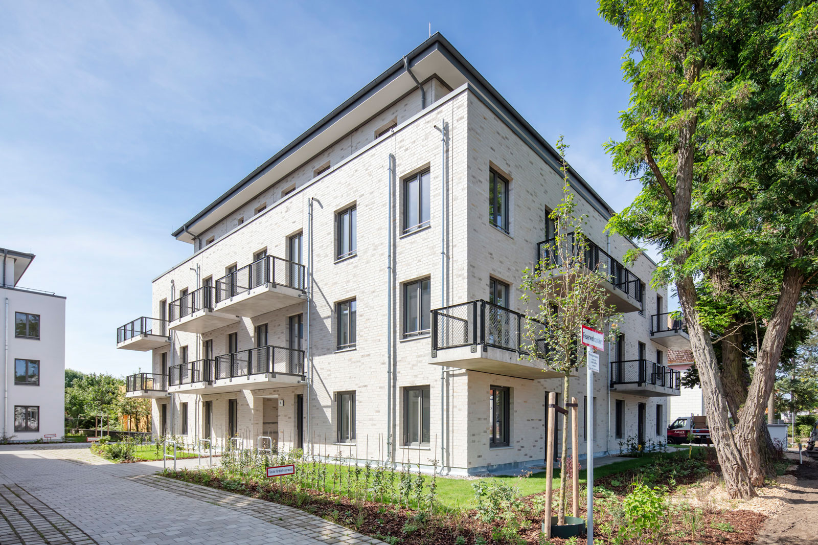 An der Potsdamer Allee in Stahnsdorf haben wir vier neue Stadtvillen mit Tiefgarage errichtet. Auf 4.500 Quadratmetern wurden 77 moderne Wohneinheiten mit Balkon oder Terrasse realisiert. Der Wohnungsmix reicht von 1-Zimmer-Apartments bis hin zu 5-Zimmer-Maisonette mit Gartenblick.